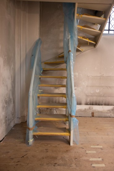 Der skal opsættes et gelænder (nyt inventar) for at hjælpe de kirkegængere, der har udfordringer med bentøjet, så de lettere kan komme op til alteret. Trægulvet er færdiglagt, og der kan snart opstilles stillads, så murerne kan begynde arbejdet med at fjerne det gamle kalklag. På et af billederne kan man se, at der gemmer sig kalkmalerier under det nuværende kalklag.